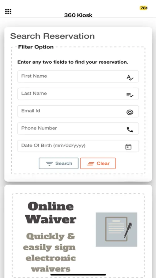 This app is an add-on and a self-service module for the 360 POS. Using this app stores can accept waivers online. Using this Kiosk app, the end customers can open their courses or rental and sign their waiver form.