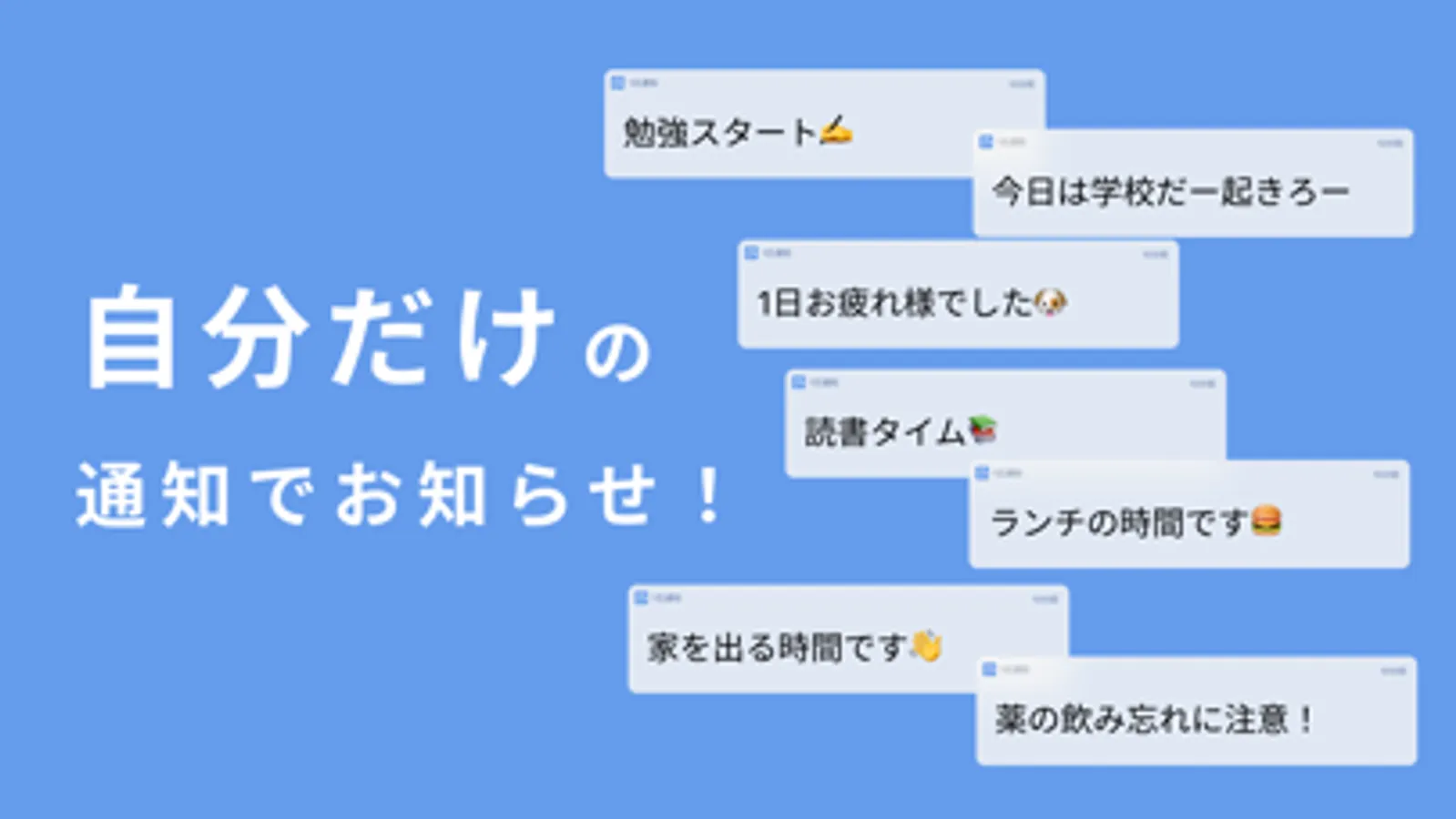 通知に表示される文章を決められるから、自分だけの使い方ができます。