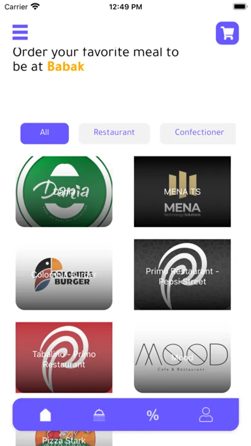 يربطك تطبيق بابك بمجموعة من المطاعم المحلية، حتى تتمكن من الطلب من قوائم الطعام المفضلة لديك وقتما تشاء.