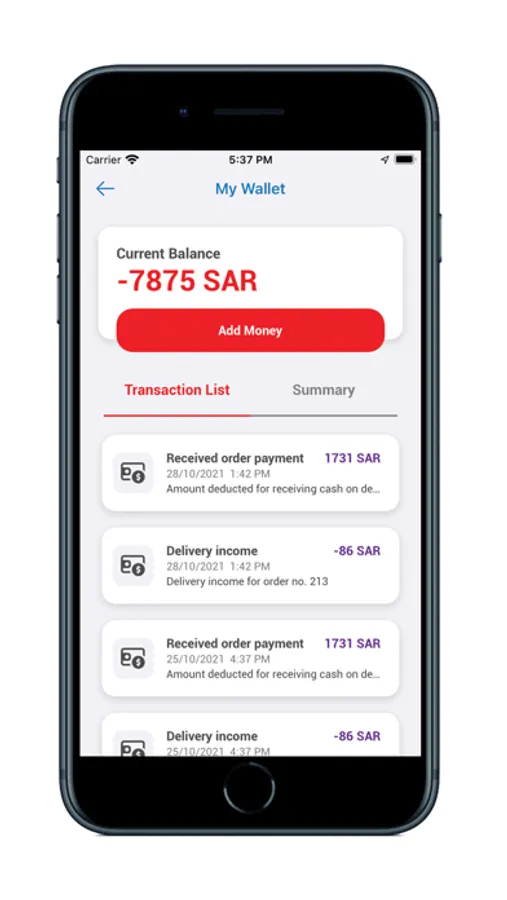 Software used by the driver to receive and deliver orders to the main platform users PueDot