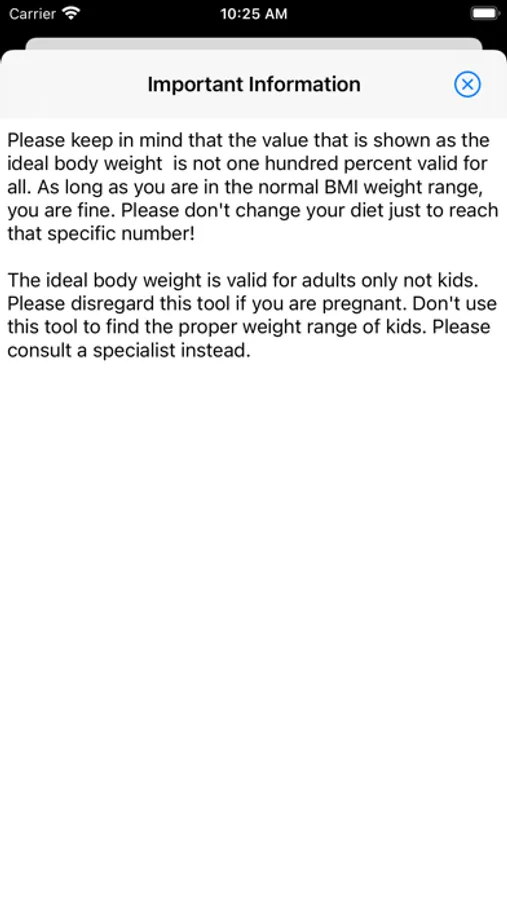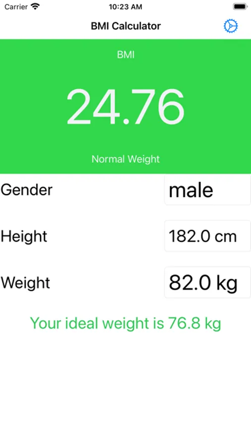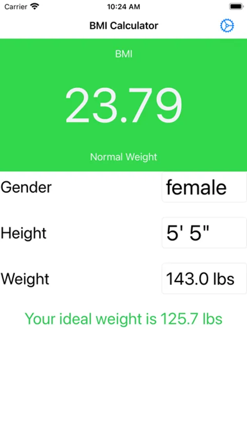 The BMI app will also calculate your Ideal Weight, based on your profile.