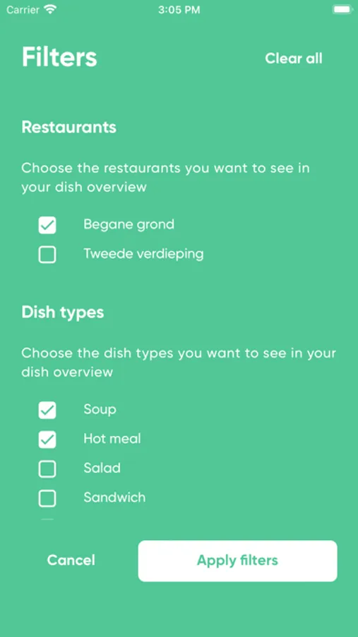 The app contains a menu with product information, an event calendar and service related news. Users can choose their lunch of the day, pay in advance and provide feedback. We will continuously improve our services with real-time data.