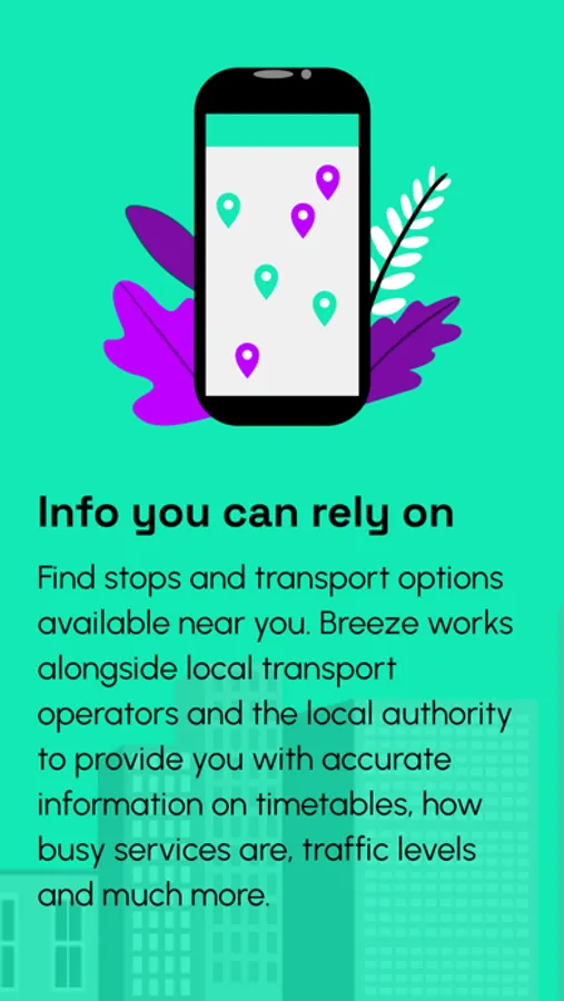 Find live, local information you can rely on. Find stops and public transport options available near you. Breeze works alongside local transport operators and the local council to provide you with live and accurate information on timetables, transport disruption, how busy services are, traffic congestion and much more.