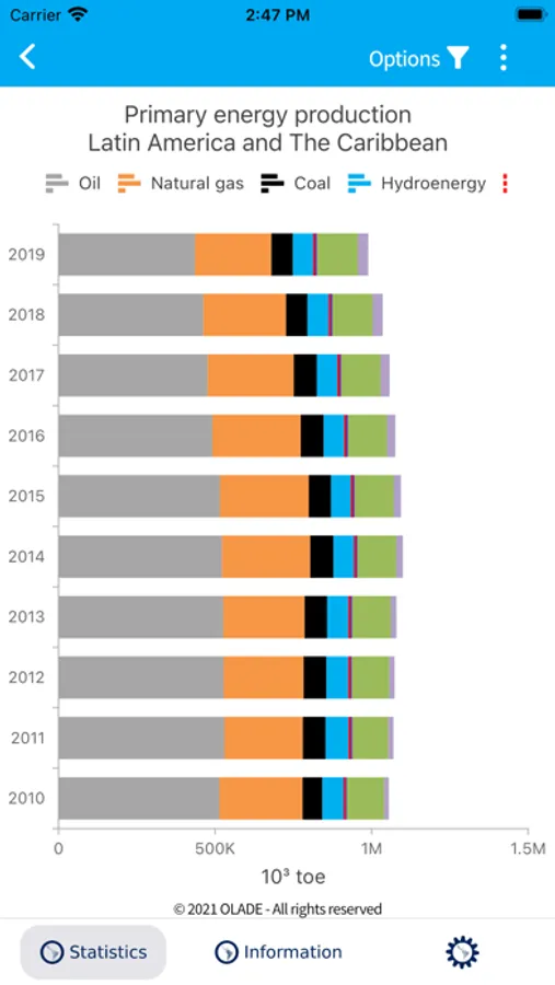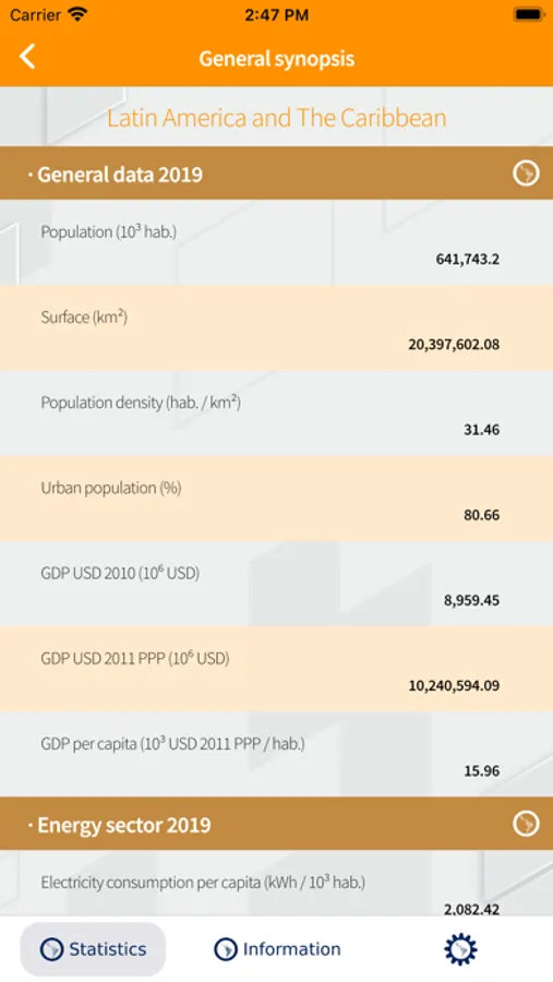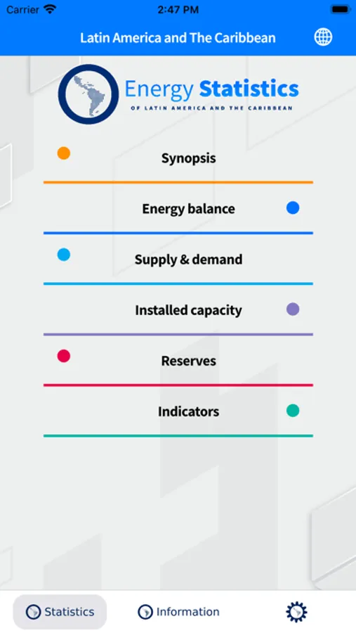 This App contains the most relevant statistics of the energy sector of the 27 countries of Latin America and the Caribbean, Members of the Latin American Energy Organization – OLADE. The information is organized by subject, easily accessible, and includes national, and regional data for the last 10 years.