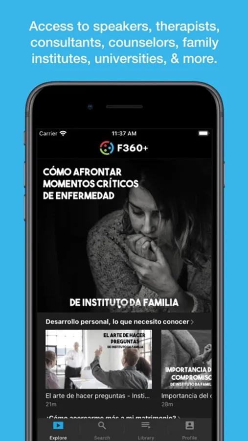 We have classes, trainings, series and tips from recognized professionals Therapists, Psychologists, Consultants, and Counselors from all over the world in Spanish related to: