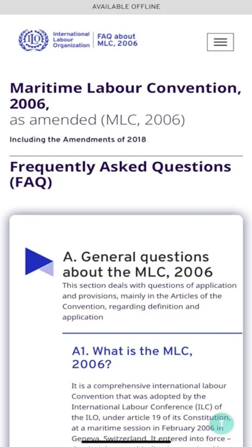 This fifth edition of the Frequently Asked Questions about the ILO’s Maritime Labour Convention, 2006 has been prepared in December 2019. It is intended to help persons engaged in the study or application of the MLC, 2006 to find answers to questions they have about this innovative and comprehensive Convention. The answers provide information in the form of brief explanations referring to the Convention and other reference materials. They are not legal opinions or legal advice as to the meaning of a requirement in the Convention or its application to an individual situation.