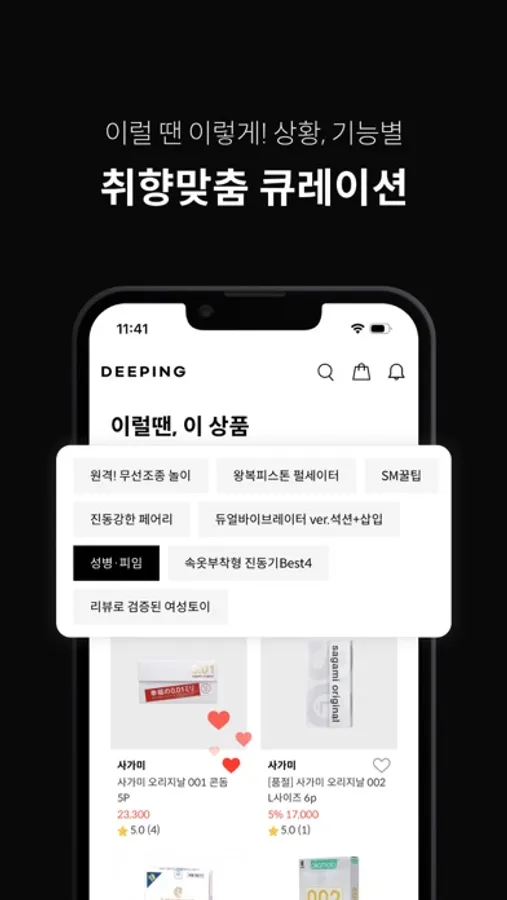 - 내가 찾는 성인용품을 기능별 카테고리, 브랜드관으로 더욱 쉽게 찾아볼 수 있어요