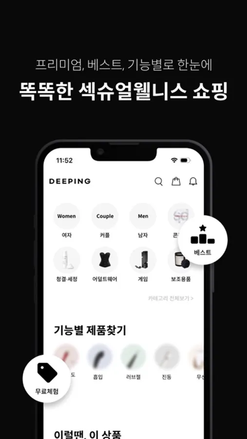 - 한 번쯤 도전해 보고 싶었지만 망설여지셨나요? 이젠 디핑에서 프리미엄 인기 섹슈얼웰니스 제품도 무료로 먼저 경험해 보세요.
