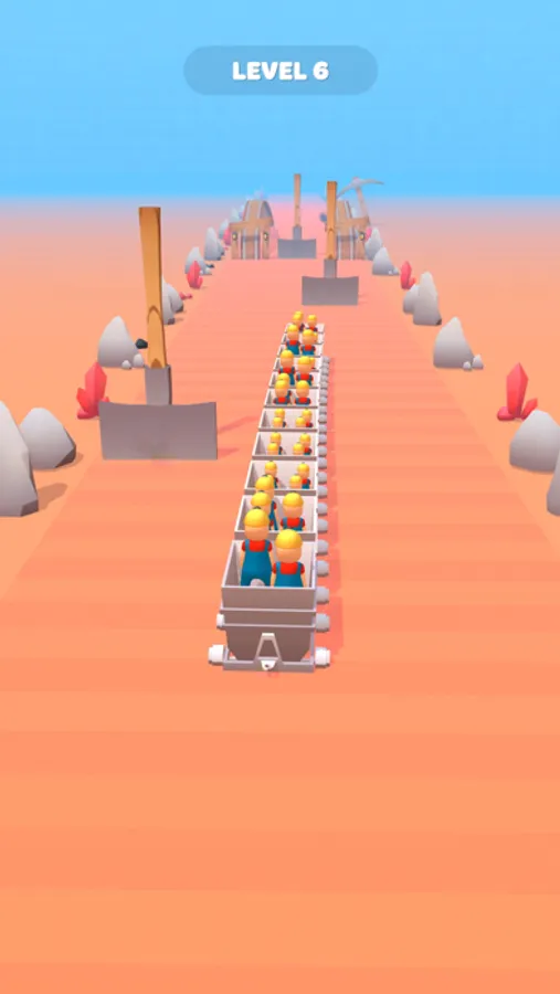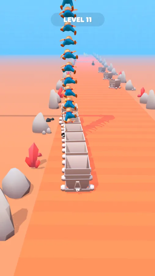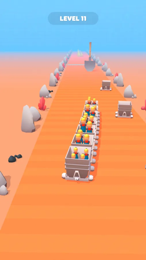 - Stack mine carts and collect miners.