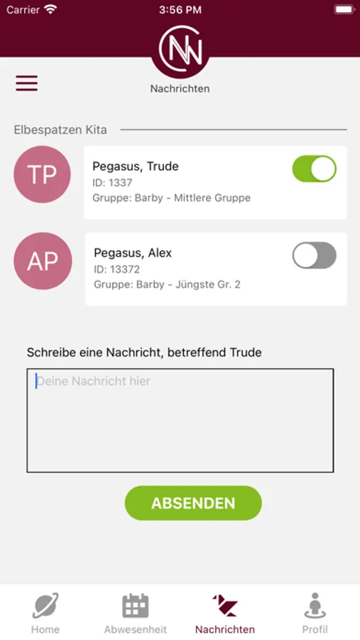 - Erhalt von Nachrichten aus der Kita bzw. Gruppe oder vom Erzieher
