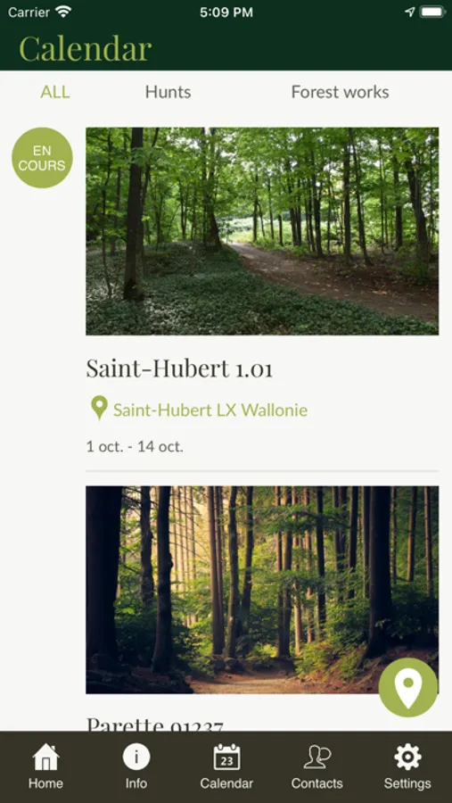 D’un simple coup d’œil, vous avez accès à l’agenda des chasses et travaux forestiers proches de votre position. Classés par date et en géolocalisation dans une carte interactive.