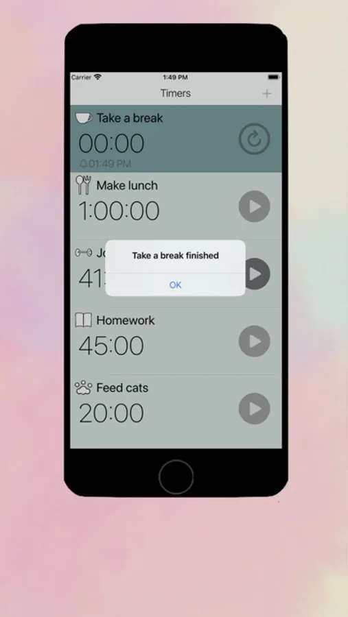 When time is up, UrTimers will remind you by soft alarm ringtone and notification if it is not in foreground. (need notification permission)