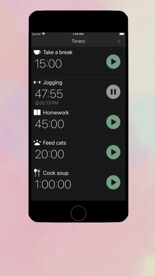 Provide 8 categories with unique cute animation/icon to help you manage timers.