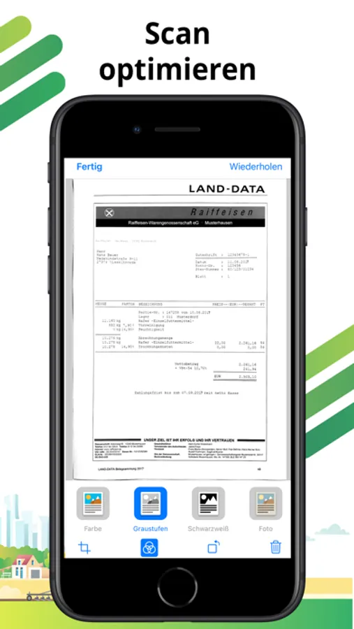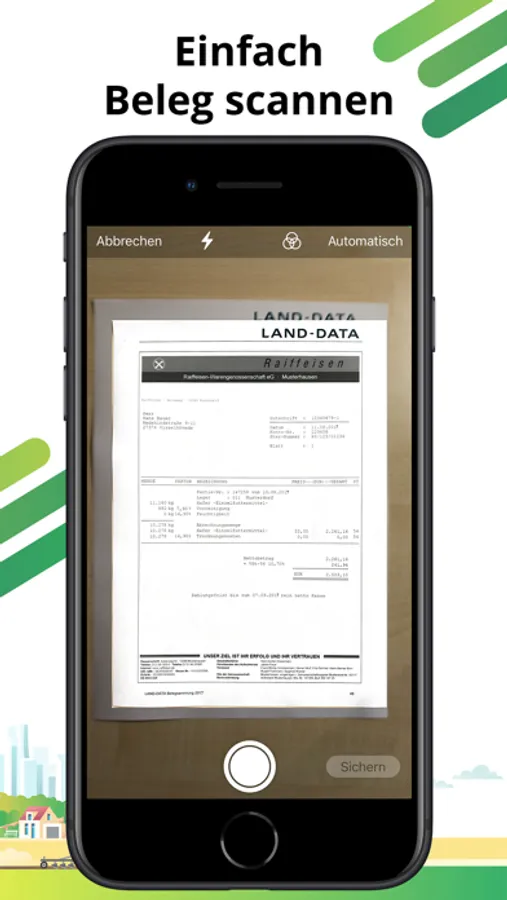 Mit der Just Farming App kannst Du buchführungsrelevante Belege direkt mobil einscannen - der perfekte Einstieg in die mobile Buchhaltung. Du kannst Belege auch direkt unterwegs mobil einscannen und archivieren. Dein Steuerberater kann sofort parallel darauf zugreifen. Alle Belege und Dokumente werden sicher im LAND-DATA Rechenzentrum archiviert und können bei Bedarf nachträglich weiter bearbeitet werden, bequem und einfach. Buchhaltung der Zukunft eben.