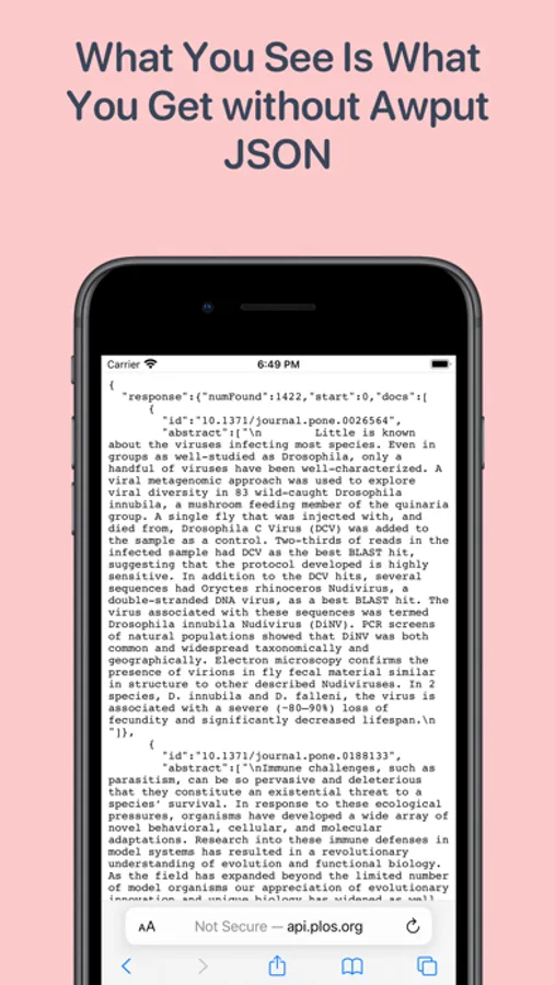 How does it work?: just navigate via the iOS native Safari web browser to any webpage which its response is basically a JSON.