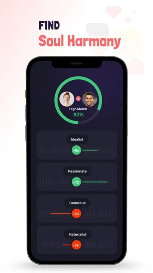 If you're in the excitement of a new relationship, or if you're experiencing tides even when you're inconsistent love, how about an analysis to support you? Is the other person really the right partner for me? If you're wondering, it's time to use AI Matchmaking, which embellishes the app. How compatible are you and your partner's face photos with your Soul, Mind, Heart, Self, and Zodiac harmony charts? You will be amazed at the results! See our incredible tips for your love life! Discover the celebrities who look the most like you. Compare yourself with who you want from these celebrities.