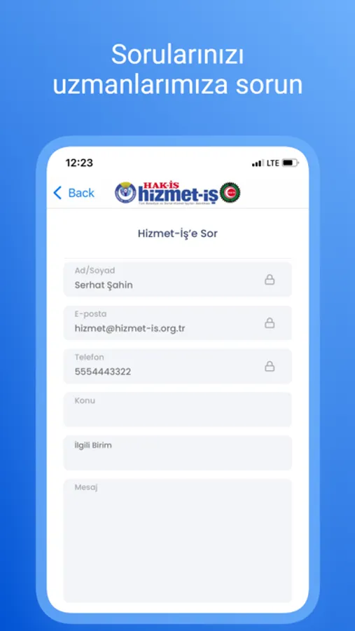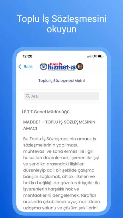 Hizmet-İş Sendikası Mobil Uygulamasını tüm İşçiler indirebilir. Bu uygulama sayesinde yapmış olduğumuz faaliyetlere ve yeniliklere ulaşabilirsiniz. Uygulamamızı indiren üyelerimiz uygulamanın ek özelliklerinden faydalanabilir. Bunun için kullanıcı girişi yapmaları gerekmektedir.