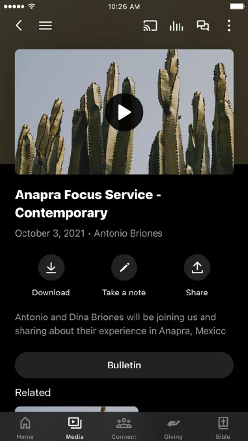 This app will help you stay connected with the day-to-day life of our church. With this app you can: watch or listen to past messages; stay up to date with push notifications; share your favorite messages via Twitter, Facebook, or email; and download messages for offline listening.