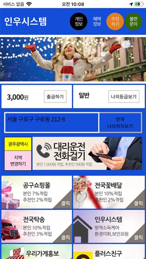 인우시스템-대리운전, 꽃배달,탁송,쇼핑몰 이용시 적립되는 어플