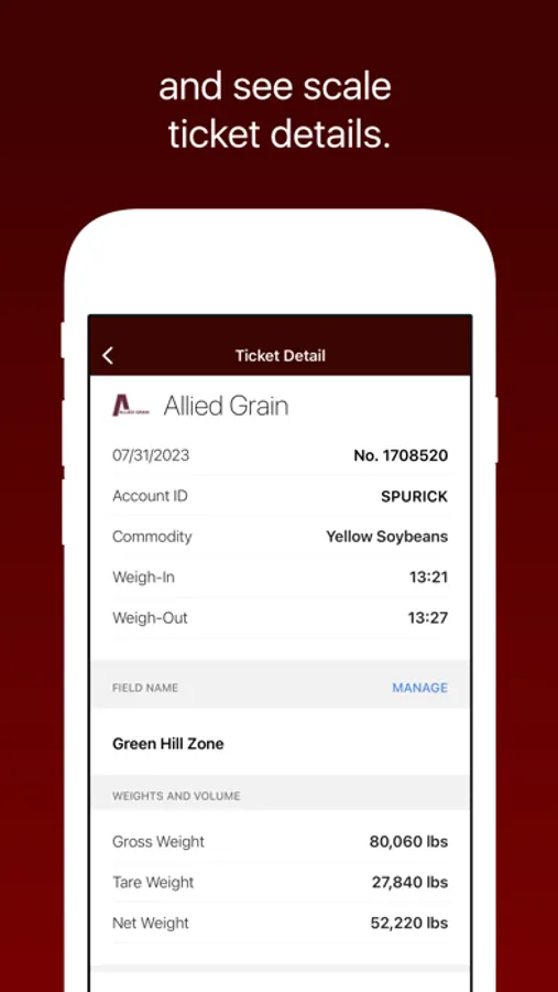 The Allied Grain Company app is an essential mobile solution that connects your operation to your grain facility, providing real-time, actionable information to help you manage and grow your business.