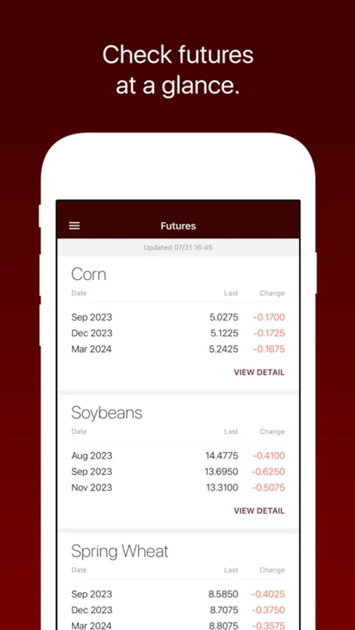 Futures: See Grains, Feed, Livestock, and Ethanol futures listed in order of your preference