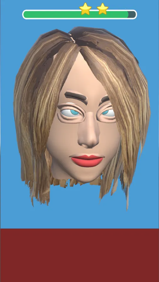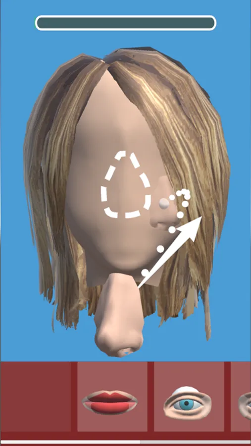 There is a human face without any features, and cutouts of several facial features (such as the eyes, eyebrows, nose and mouth).