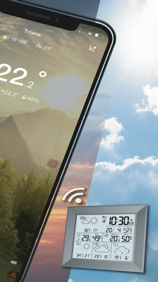 Owners of a DirektWetter WD 2000 weather station can additionally display the data of their weather station on their smartphone. So you always have the weather situation, for the location of your weather station, in view: The app offer the same information as the display (local temperature and humidity from a total of 4 possible sensors, professional weather forecast data for 4 days for the location of the weather station) of their weather station and provides them with additional features, such as alarms, graphical display of the progressions and more.
