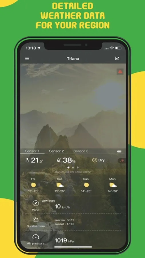 Receive notifications about battery and transmission status of your WD2000 DirektWetter station via app.