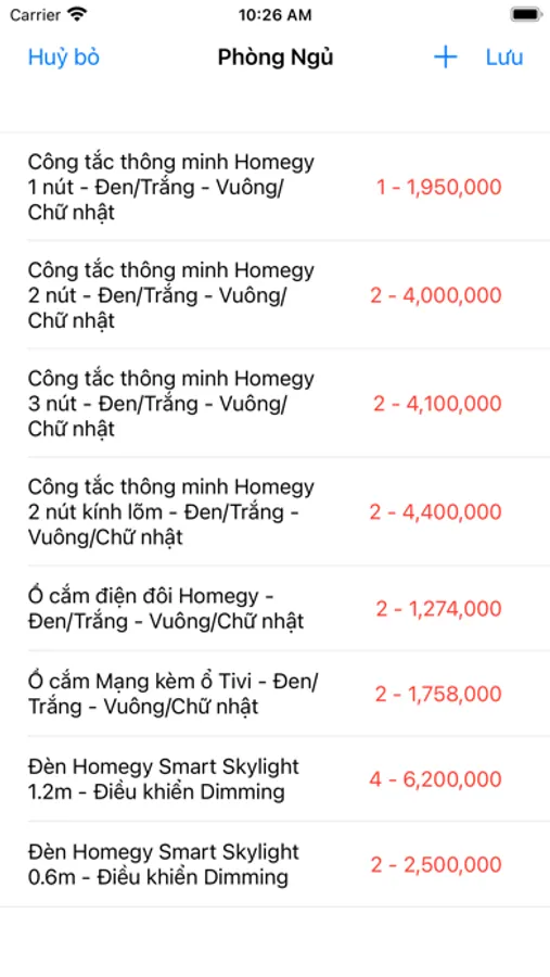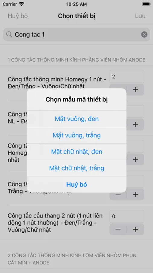- Chọn các loại thiết bị trong báo giá: Số lượng, chủng loại