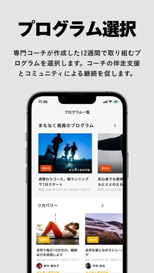 さらに、「何をしていいか分からない」「より強度を上げていきたい」という様々な声に対応できるよう、数多くのコンディショニングプログラムとサポートコーチが存在します。加えて活動データを蓄積することで過去との変化に気づき、自己効力感が増す効果も期待できます。