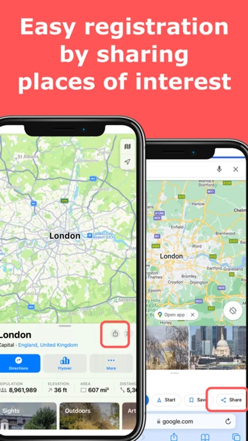 - Easily register a place data by sharing it with this app from map apps and web search results.