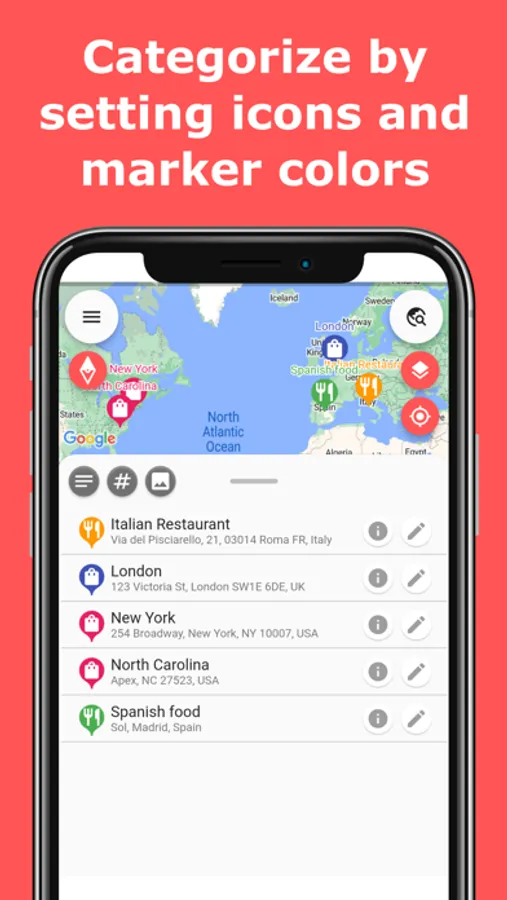 - You can change icons and the color of markers for each favorite place, making it easy to search from the map.