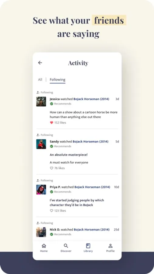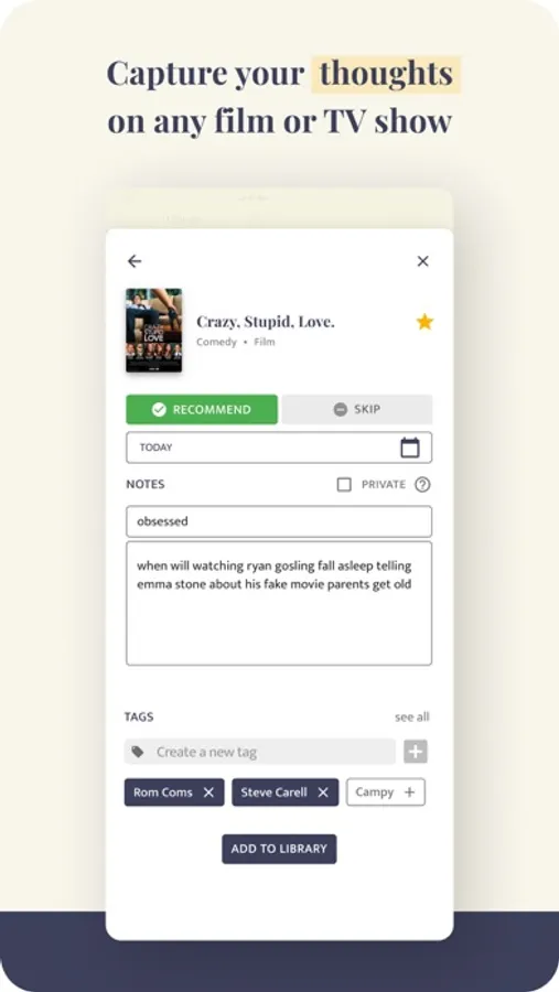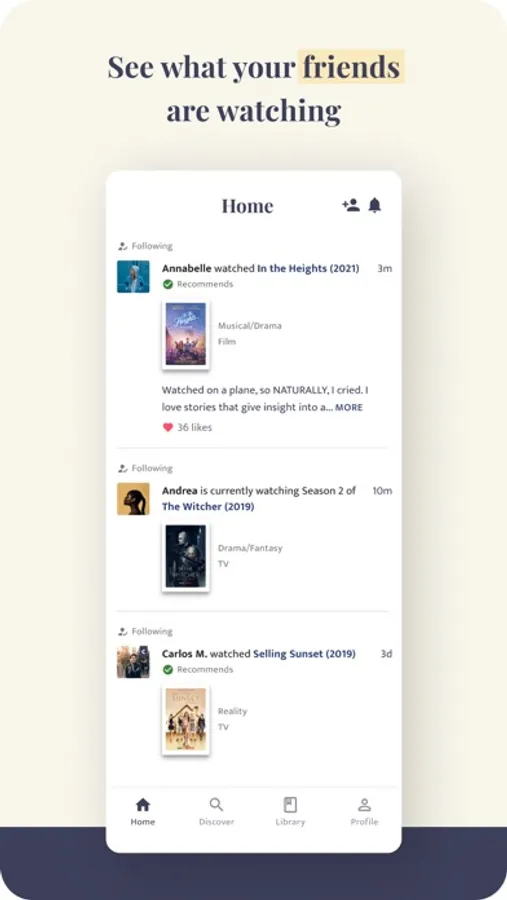 - A tagging system that helps you organize your library and curate collections of films and shows, which others can view on your profile for inspiration on what to watch next