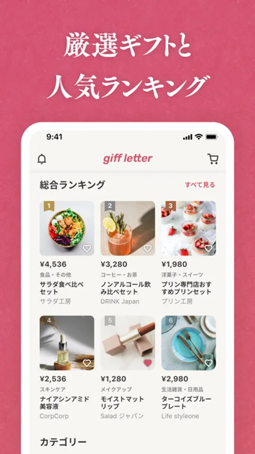 カテゴリやシーン別の人気ランキングを紹介しています。ギフト選びに自信がない方や迷っている方でも、喜ばれること間違いなしのギフトを選ぶことができます。