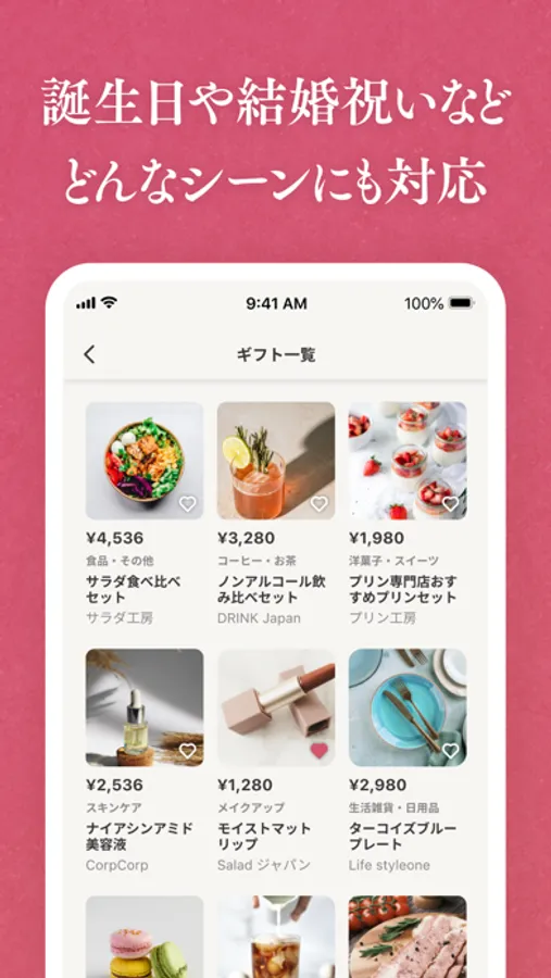 あらゆるシーンやお相手に合わせて厳選されたギフトが表示されるため、ギフト選びに困りません。