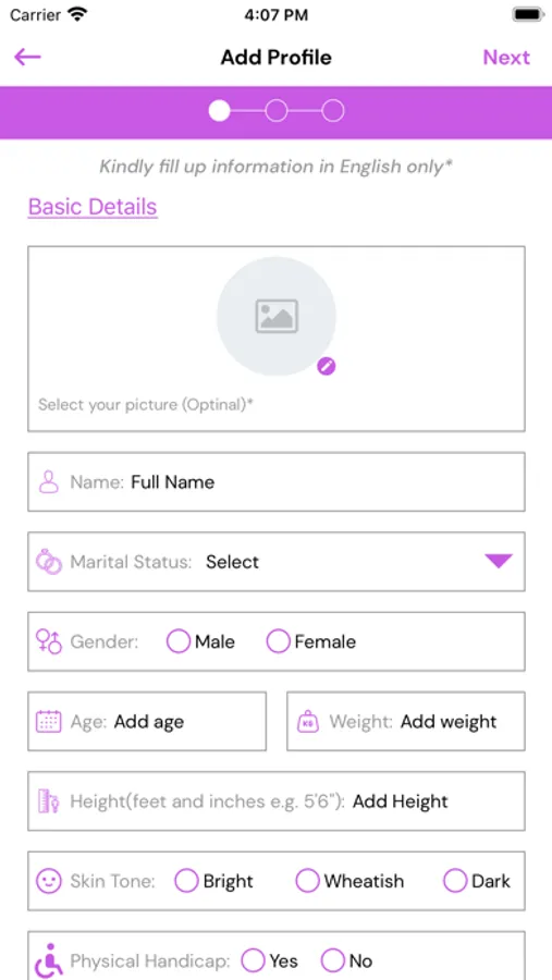==> After creating profile, it will be verified by experts, then it will be visible to other members of the app.
