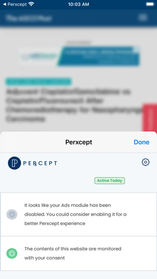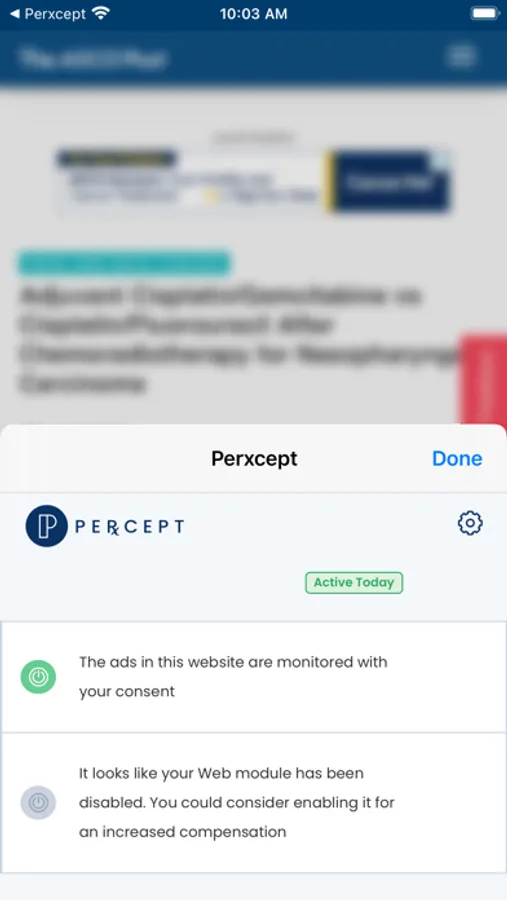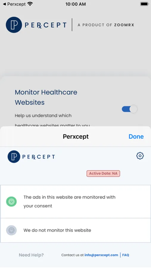 Perxcept (read as “percept”) is a Safari Web Extension by ZoomRx for your iPhone/iPad that passively monitors your exposure to healthcare-related content across select websites. None of your personal information is collected as part of this research.