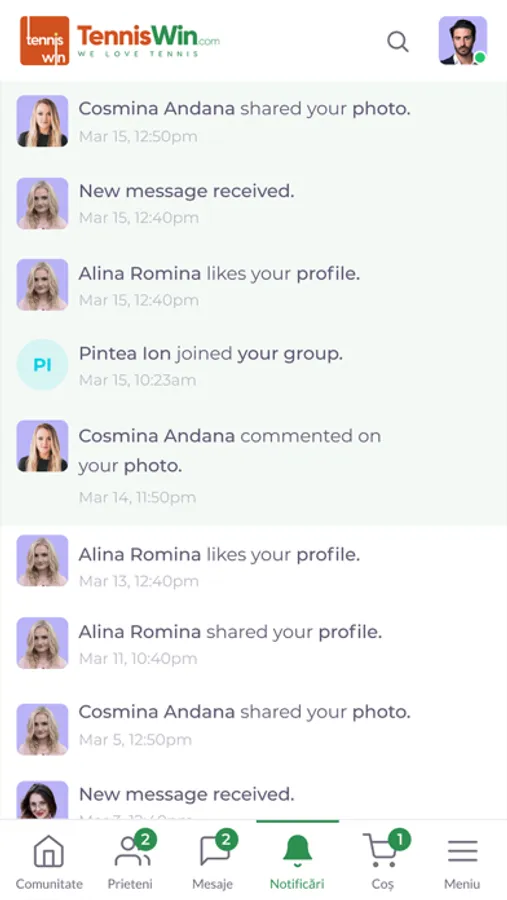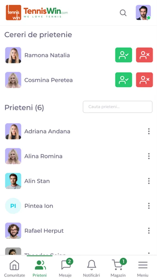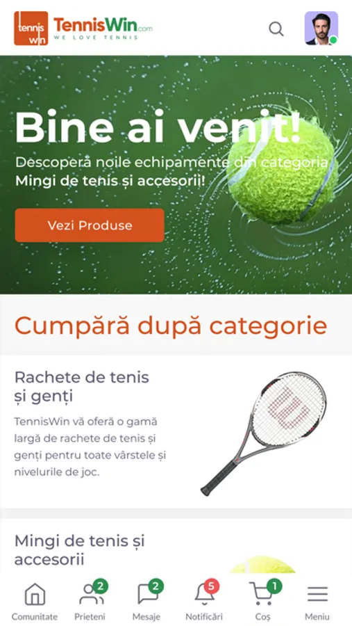 "Pentru jucatori: Gaseste parteneri de joc in apropiere de tine, inchiriaza terenuri, socializeaza si cumpara cele mai bune echipamente si accesorii de tenis.