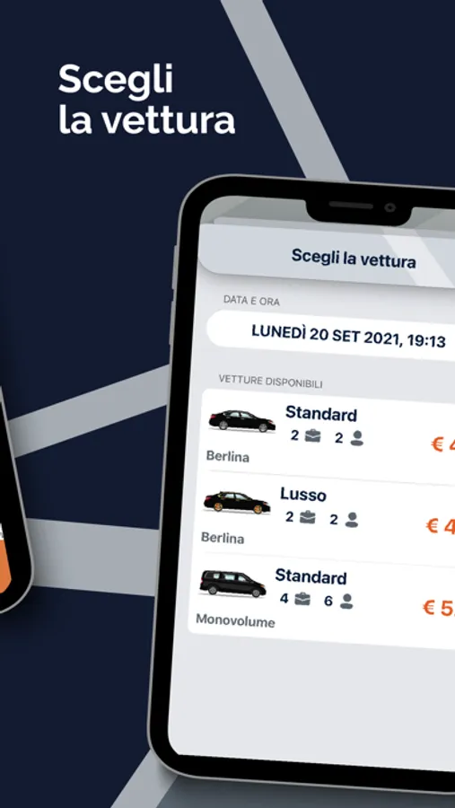 Potrai segliere su quale vettura viaggiare e quanto spendere per il servizio di cui hai bisogno.