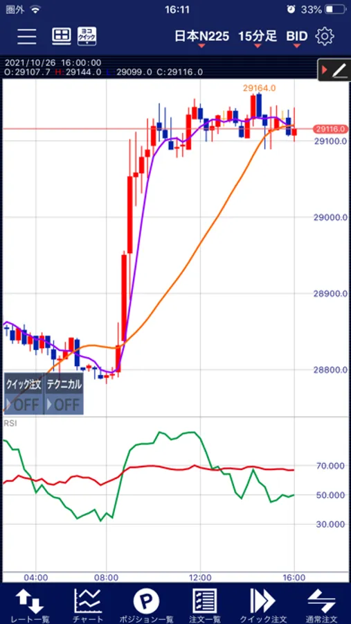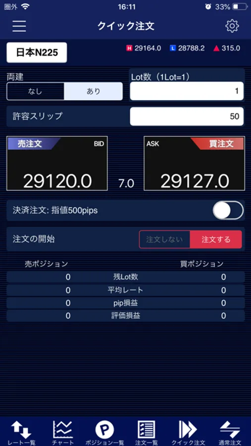 2. 1タップで即時注文が可能な「クイック注文」を搭載(チャートからの発注も可能)