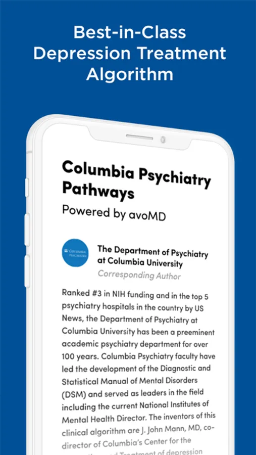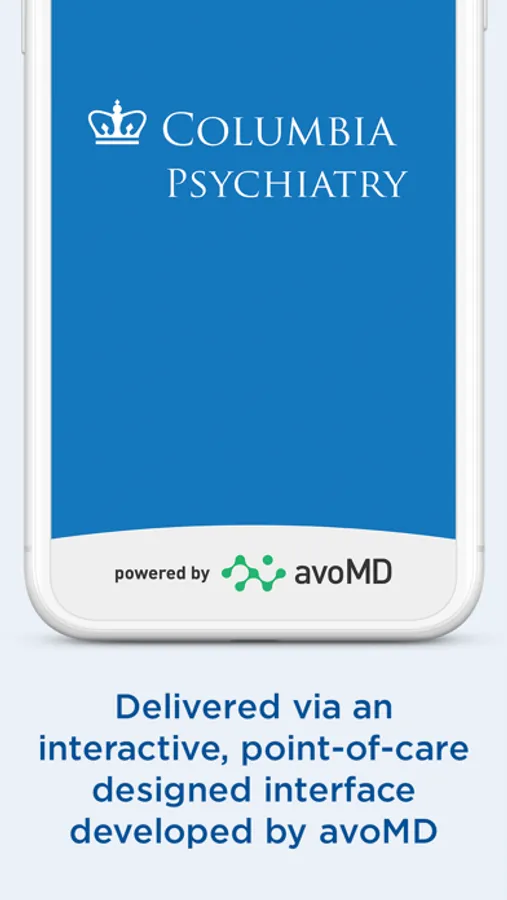 - Designed by experts from Columbia University's Department of Psychiatry and delivered via avoMD's next-gen decision support technology
