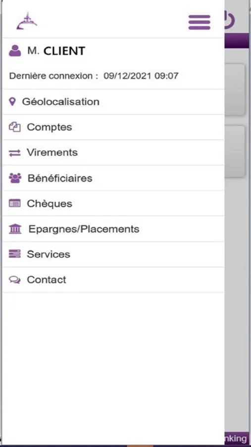 - Visualisez instantanément la liste et les informations essentielles relatives à vos comptes (solde, montant disponible, autorisation, date d'échéance, réserve, chèques)