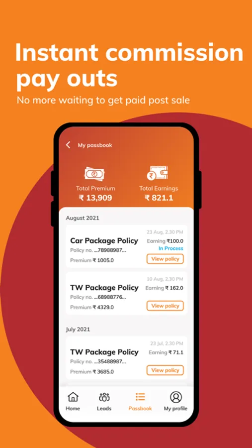 Selling through the app is pretty straightforward. You can generate instant quotes for motor products available in the app. Once the customer pays premium, the policy is issued instantly. You don’t need to visit the branch or worry about mountains of paperwork to issue the policy.