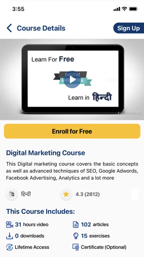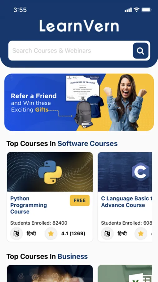 LearnVern offers 100% Free Tutorial Courses taught by Expert Trainers in Hindi - LearnVern Online Learning App has been trusted by over 350K users and it offers the best Online Classes. Upon Course Completion, you will get connected with Jobs and Employers and optionally you can opt for a SkillIndia Certificate which is valid for Jobs and Internships.