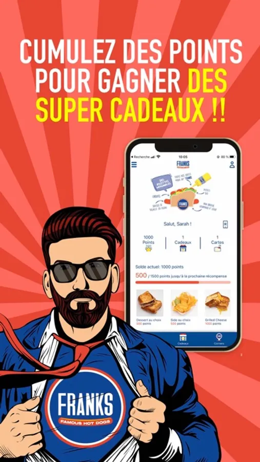 Cumulez 10 points à chaque € dépensé et gagnez des nachos cheddar guacamole, desserts, sides, grilled cheese, Roll-dogs et plus encore !