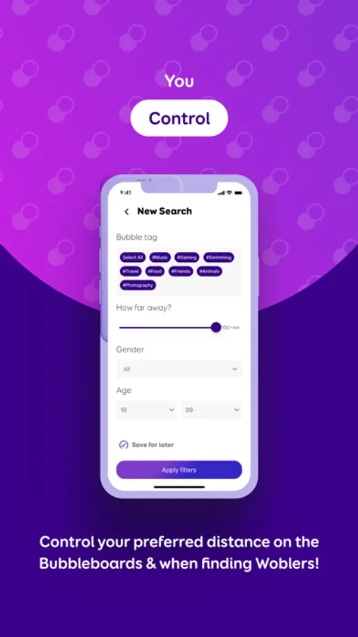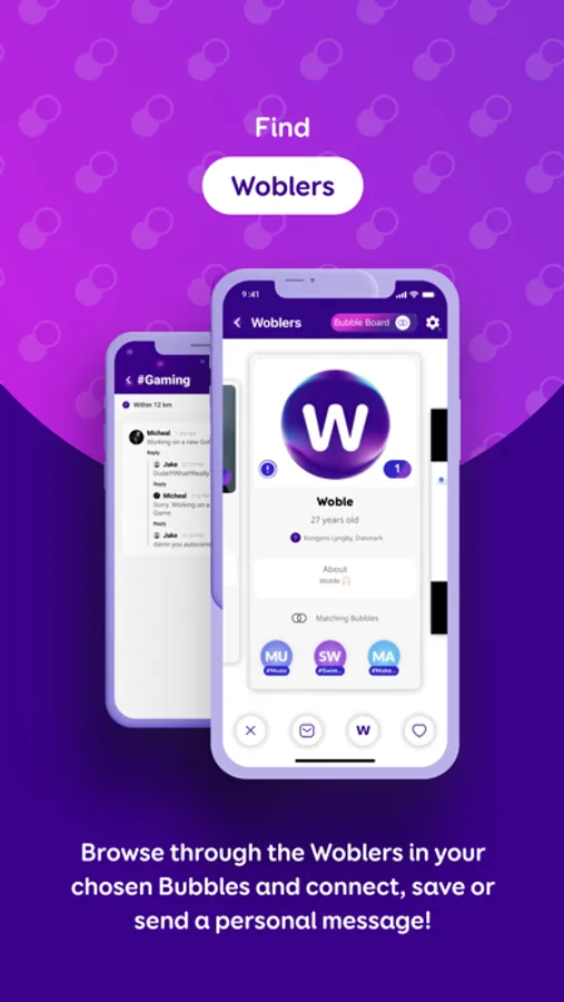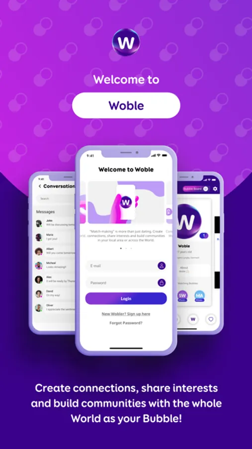 Through Woble you will be able to create connections, share interests and build communities locally or with the whole World as your Bubble. Download the Woble app, become a Wobler and start exploring!