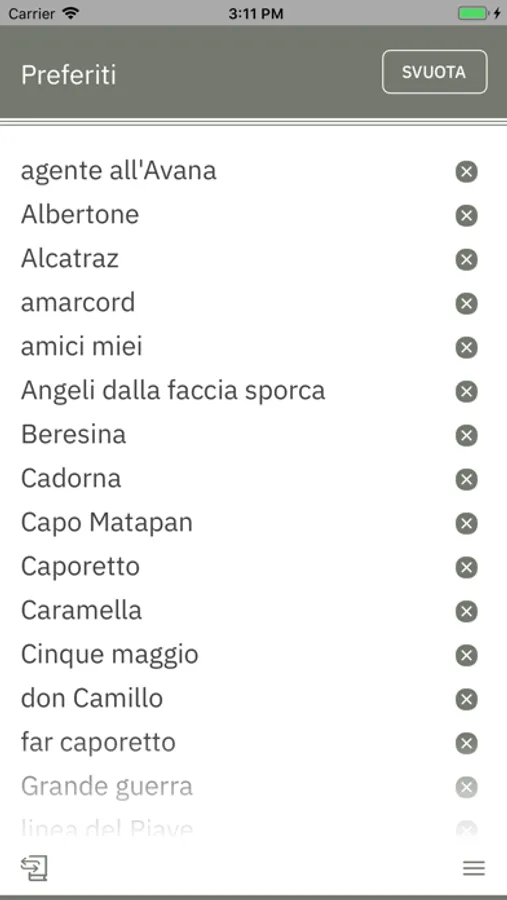 • Preferiti — per salvare le parole da imparare
