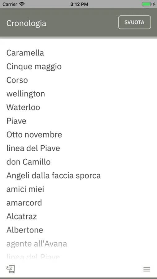 • Cronologia delle voci consultate
