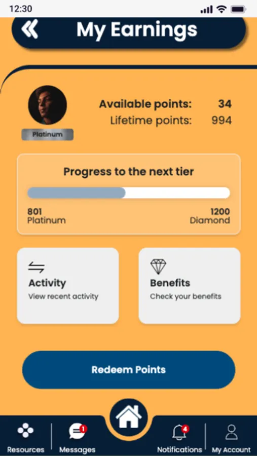Earn and redeem points for completing in-app activities