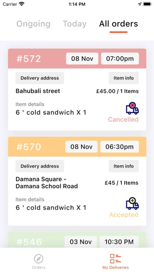 The Drivers can View Orders, Navigate, and Mark Order as Completed/Delivered.